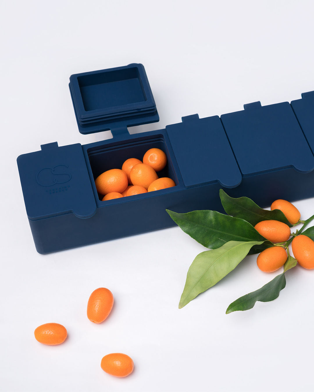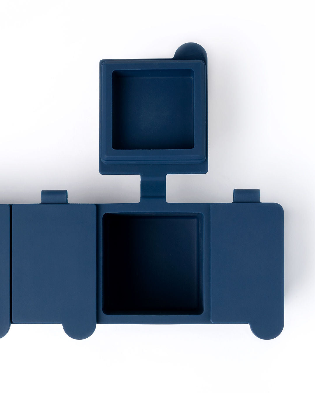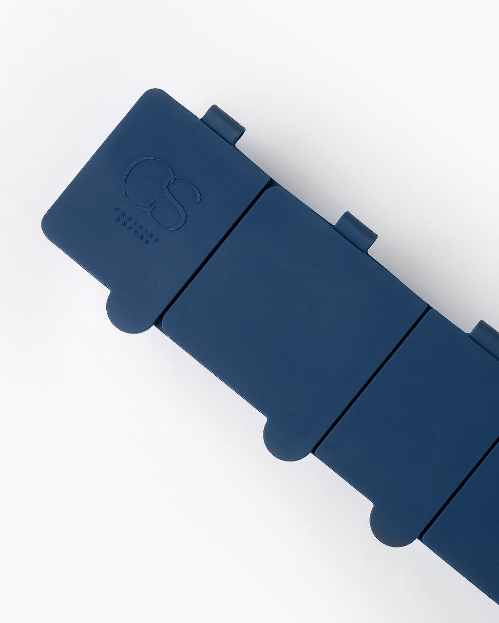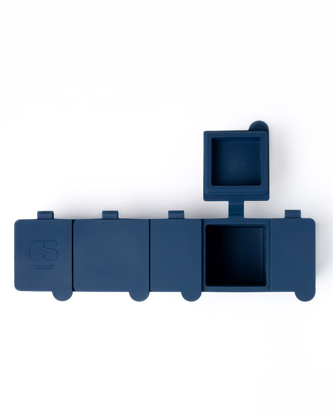 Our ecofriendly, silicon Contains Anything Box has 5 compartments with individual airtight lids, offering storage of variety of snacks for your trip. Each lid is connected to the base container (handy, so you don’t lose them) and can be opened individually, ensuring if there is a trip, bump or spill, (or a kid runs past spraying sand on the beach) most snacks are contained in this leak proof container.